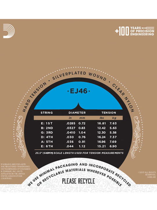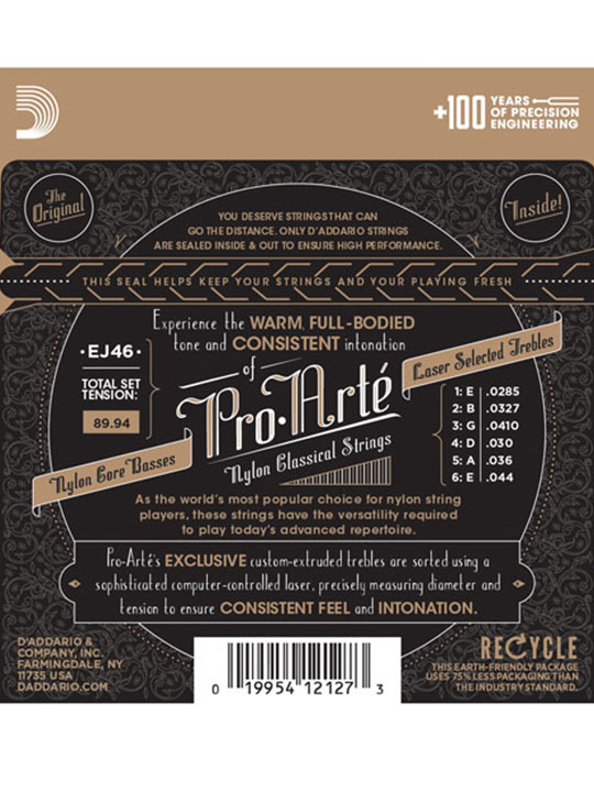 Pro-Arte, the world’s most popular classical strings are D’Addario’s premium classical guitar string sets. All Pro-Arte treble strings are sorted by a sophisticated computer-controlled laser machine which performs diameter and tension measurements, ensuring true-sounding, precise trebles in every set. Pro-Arte basses are wound using silver-plated copper on a multi-filament nylon core for consistent and warm, yet projecting tone.
