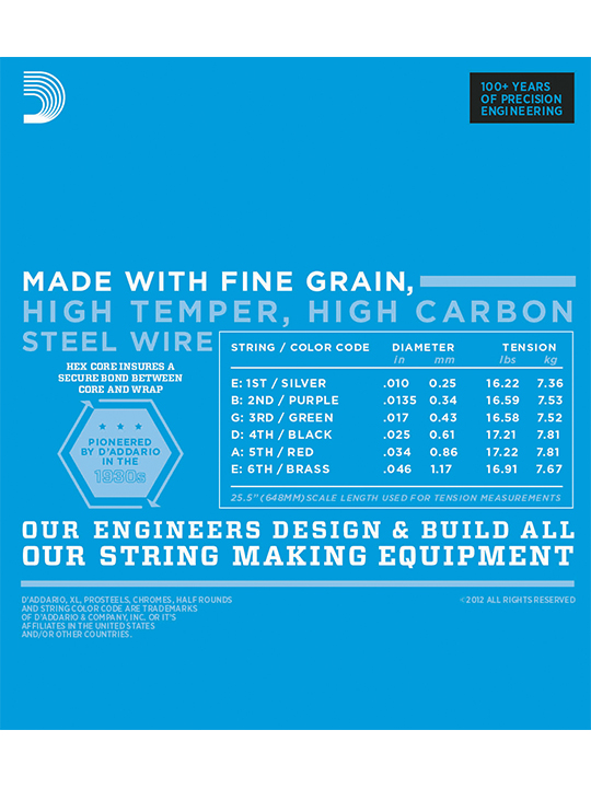 - EXL120+, with its 9.5 gauge high E, is the ideal “step up” string set for players who are moving up from 9 to 10 gauge sets. Additionally, it’s great for balancing tension between various scale length guitars. If you play 9s on a 25 1/2″ scale guitar, try EXL120+ for your shorter scale length instruments to maintain more consistent feel and playability.XL Nickel Wound, D’Addario’s most popular electric guitar strings, are precision wound with nickelplated steel onto a carefully drawn, hexagonally shaped, high carbon steel core. The result, strings with long lasting, distinctive bright tone and excellent intonation, is ideal for the widest variety of guitars and musical styles.