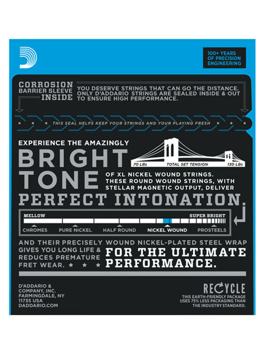 XL Nickel Wound, D’Addario’s most popular electric guitar strings, are precision wound with nickelplated steel onto a carefully drawn, hexagonally shaped, high carbon steel core. The result, strings with long lasting, distinctive bright tone and excellent intonation, is ideal for the widest variety of guitars and musical styles.