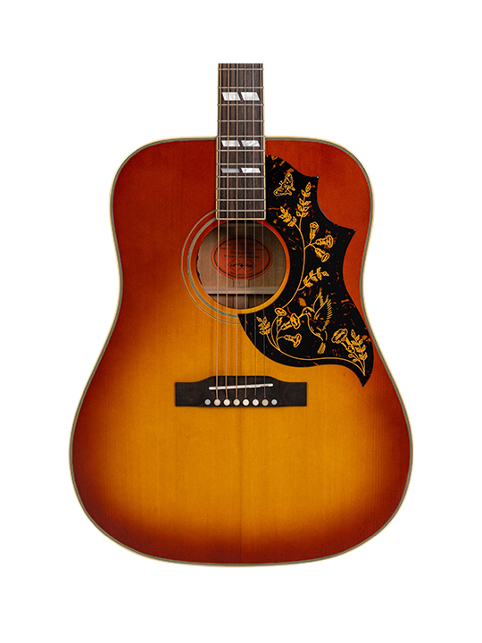 - The Epiphone 1960 Hummingbird ‘Inspired By Gibson Custom’ Acoustic Electric Guitar in Cherry Sunburst is a faithful reissue of one of the most iconic acoustic guitars in music history. Originally introduced in 1960, the Gibson Hummingbird marked a new era with its square-shoulder design and rich, full-bodied sound. Now, Epiphone’s reimagined version reflects the spirit and performance of the original, enhanced with modern features to bring vintage style and exceptional playability to today’s musicians. The solid thermally aged spruce top and solid genuine mahogany back and sides offer a warm, resonant tone perfect for a variety of playing styles.