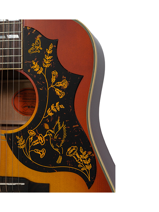 - เครื่องดนตรีที่สวยงามชิ้นนี้มาพร้อมกับเฟร็ตบอร์ดไม้ Rosewood พร้อมอินเลย์รูปสี่เหลี่ยมด้านขนานมุกและบริดจ์ไม้โรสวูดใหม่ ให้ความรู้สึกหรูหรา คอกีต้าร์ที่ผ่านการอบด้วยความร้อนพร้อมโปรไฟล์ที่ถูกต้องตามยุคสมัยช่วยให้เล่นได้อย่างนุ่มนวลและคุ้นเคย ในขณะที่ L.R. ระบบปิ๊กอัพ Baggs Element Bronze VTC ให้เสียงที่ชัดใส การเคลือบแบบวินเทจช่วยให้กีต้าร์ดูสวยงามยิ่งขึ้น ส่วน Nut ทำจากกระดูกและ Saddle กระดูกชดเชยให้โทนเสียงและซัสเทนที่เหมาะสม ไม่ว่าจะเล่นสดหรืออัดเสียงในสตูดิโอ Epiphone 1960 Hummingbird ก็เป็นเครื่องดนตรีอเนกประสงค์ที่สวยงามที่ยังคงรักษามรดกของต้นฉบับไว้ได้ พร้อมทั้งมีคุณสมบัติที่ทันสมัยสำหรับผู้เล่นในปัจจุบัน