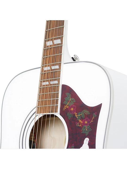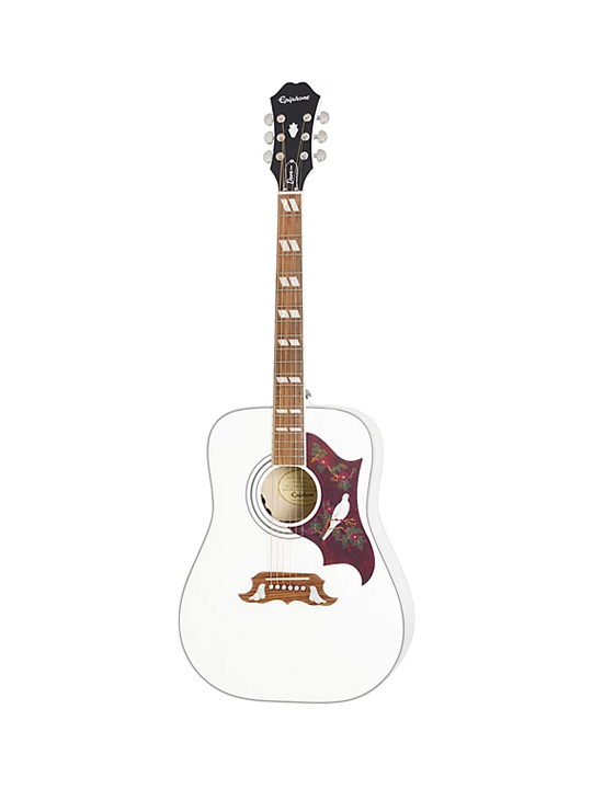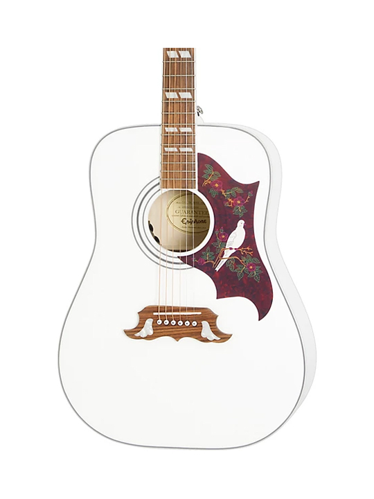 - This Epiphone Dove Pro Limited-Edition acoustic-electric guitar comes in a cool Alpine White finish recreating the ’60s classic, and features a solid spruce top and iconic pickguard art, plus the Fishman Sonitone pickup system and Grover machine heads.