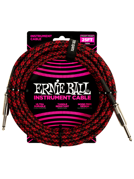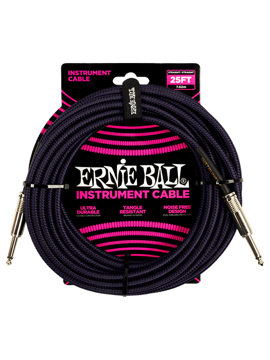 - Ernie Ball instrument cables feature a high-quality design made with superior components that are built to last. Dual-conductors deliver reliably clear tone with crisp highs, tight mids, and rich harmonics. Multiple shielding materials preserve the signal with low handling noise, and the braided jacket exterior provides a tangle-resistant experience. Cable length 25ft (7.62m).