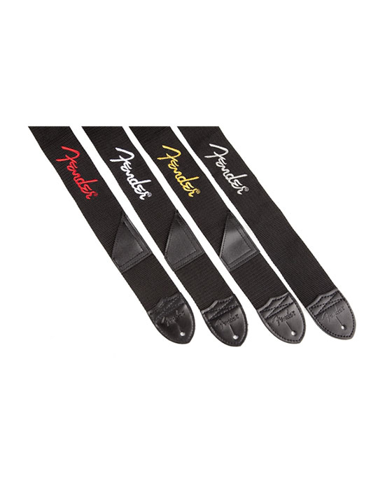 - Embroidered Fender logo and embossed logo on strap ends adds a shot of classic style. Logo available in white, grey, red or yellow.