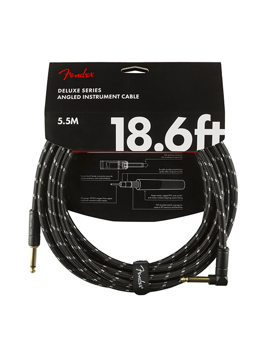 - Fender Deluxe Series cables carry the highest quality materials and braided shielding to deliver flagship durability, conductance and transparency. Our top-of-the-line cables sport custom molded ends with strain relief under the housing—plus 24K gold-plated connectors that won’t tarnish or degrade your sound over time. These cables use a very quiet braided shielding that is engineered to maximize the purity of your tone, and they’re protected by a soft-woven yet rugged tweed jacket that provides ultimate protection with classic Fender style.