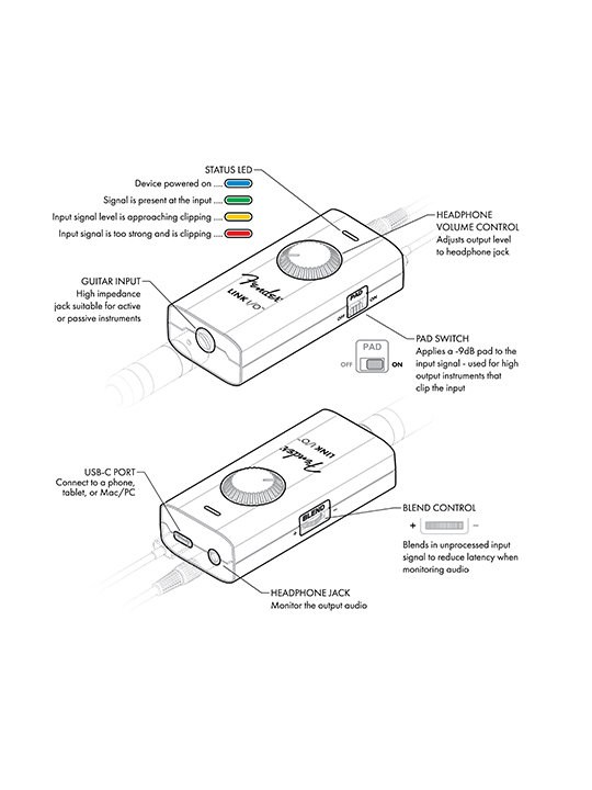 - Monitor your recording level in real time with the reactive LED signal meter