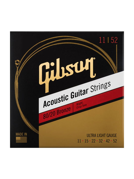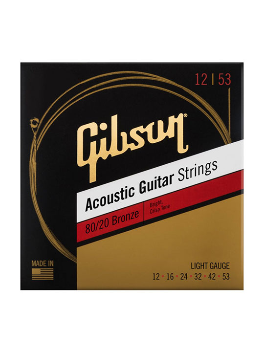 - Gibson 80/20 Bronze Acoustic Guitar Strings help bring out the true acoustic sound of your guitar. The strings are wrapped with an 80% copper, 20% zinc alloy, which delivers bright and crisp tones while maintaining the perfect balance of authentic acoustic tone & playability. A favorite in the studio, these strings are ideal for all Gibson Acoustic body designs and all playing styles.