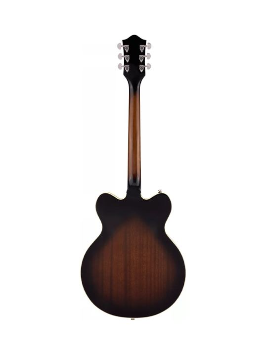 Classic ’50s and ’60s Gretsch eye-catching style is also here-all-new “radio arrow” control knobs, enlarged F-holes for increased acoustic projection, stylized pickup bezels, elegant aged white binding with upgraded purfling, black or tortoise pickguard, slick-looking nickel hardware and remarkable finishes including Brownstone, Forge Glow and Gunmetal.