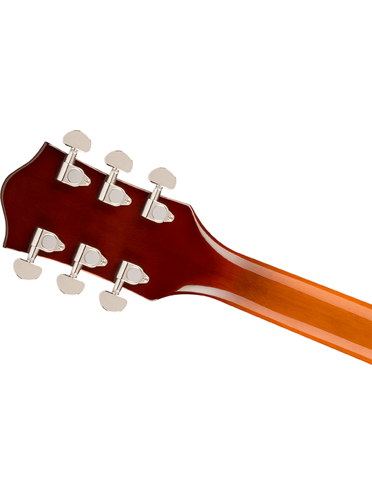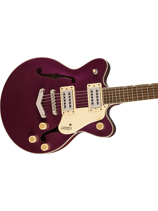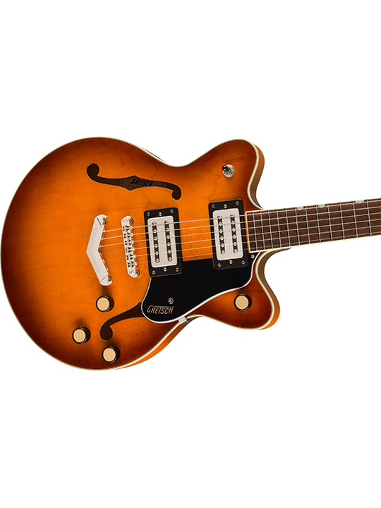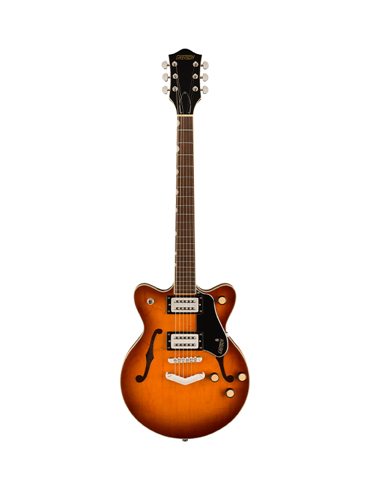 The G2655 Center Block Jr. features a smaller arched maple body with an all-new center block design under the hood. This new center block is designed to balance lightweight comfort with a full, rich sound and increased presence; resulting in improved attack and sustain, and excellent feedback rejection, in a comfortable package that won’t weigh you down.