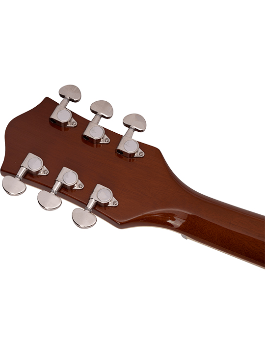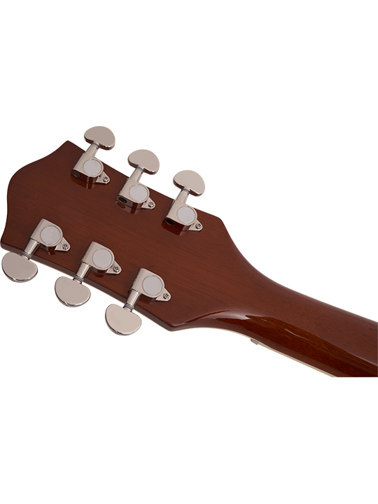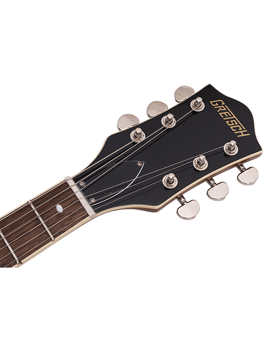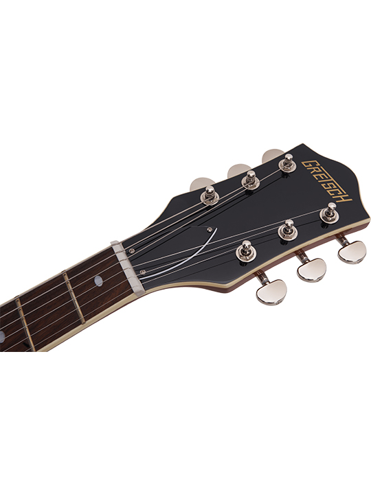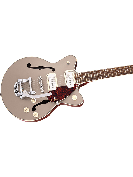The Streamliner’s sonic power is harnessed and shaped by the traditional control layout – neck and bridge pickup volume controls, a master tone control, master volume control and three-way pickup switching. Add some shimmer and expression to your playing with the Bigsby®-licensed B50 vibrato tailpiece, while the anchored Adjusto-Matic™ bridge and synthetic bone nut grant astounding tuning stability and accurate, slip-free intonation.