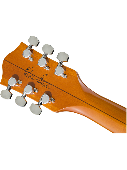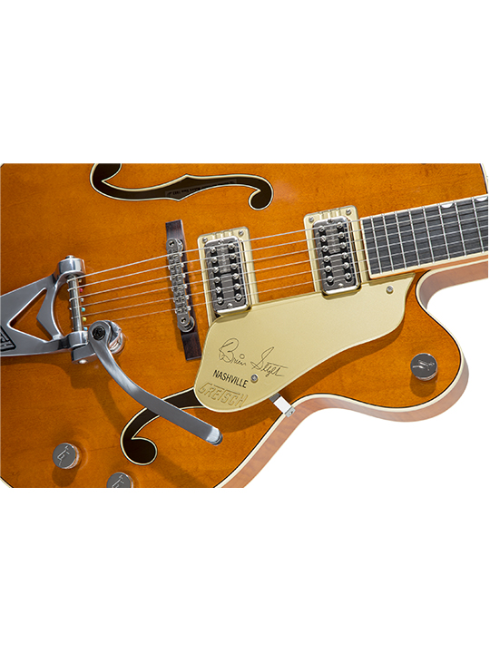 - Brian Setzer เป็นหนึ่งในนักดนตรีที่น่าตื่นเต้นและน่าประทับใจที่สุดในยุคของเราอย่างไม่ต้องสงสัยเขาได้สร้างมรดกทางดนตรีที่โดดเด่นและยั่งยืน จากการเป็นหัวหอกในการฟื้นฟูดนตรีสไตล์ rockabillyกับวง Stray Cats ไปจนถึงการเริ่มต้นวง Big Band Swing ร่วมกับ Brian Setzer Orchestra ตลอดอาชีพการงานที่มีการตกแต่งและมีเรื่องราวของเขา เขาขายแผ่นเสียงได้มากกว่า 13 ล้านแผ่น ได้รับรางวัลแกรมมี่อวอร์ด3 รางวัล และได้รับรางวัล Orville H. Gibson Lifetime Achievement Award จากการทำงานในฐานะนักกีต้าร์G6120T-BSSMK Brian Setzer Signature Nashville® Hollow Body ’59 “Smoke” with Bigsby สร้างขึ้นเพื่อเป็นเกียรติแก่ตำนานร็อคแอนด์โรลคนสำคัญ เป็นการจำลองกีต้าร์บนเวทีหลักของ Brian ตั้งแต่เลิกเล่น ‘Stray Cat’ อันเลื่องชื่อการแสดงความเคารพอย่างอุตสาหะต่อ หนึ่งในกีต้าร์ที่มีค่าที่สุดของ Brian Smoke มอบกลิ่นอายวินเทจปี 59 พร้อมประสิทธิภาพอันทรงพลัง ประกอบไปด้วยรายละเอียดที่ถูกต้องตามยุคสมัยมีมากมาย รวมถึงรูปทรงและโลโก้ของเฮดสต็อกปี 59 รูปทรงปิ๊กการ์ด ขนาด ตัวยึด ระดับเสียง โทนเสียง และตำแหน่งของสวิตช์ และการเคลือบแลคเกอร์ในแบบ“Smoke Orange” semi-gloss lacquer finish แบบคลาสสิคที่สวยงาม พร้อมวัสดุและคุณสมบัติระดับพรีเมี่ยมทั้งหมดปิ๊กอัพ Dual TV Jones Ray Butts Ful-Fidelity ให้โทนเสียงที่ไร้กาลเวลาพร้อมการตอบสนองเสียงเบสที่ยอดเยี่ยมและ ปิ๊กอัพ Filter’ Tron sparkle ที่ให้เสียงสว่างเปล่งประกาย มาพร้อม Bigsby B6CGH vibrato tailpiece อีกทั้ง Delrin nut และ Gotoh locking tuning machines