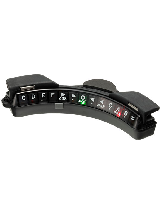 The note name indicator is optimally balanced between the left and right of the display. The LED meter is shown across the entire display, and the strength of the light expresses the movement of the needle with exquisite precision. When the tuning is exactly correct, the left and right LEDs blink briefly, showing at a glance that you’re perfectly tuned. This ensures excellent visibility not only when practicing in a bright room, but also on a dimly lit stage.。