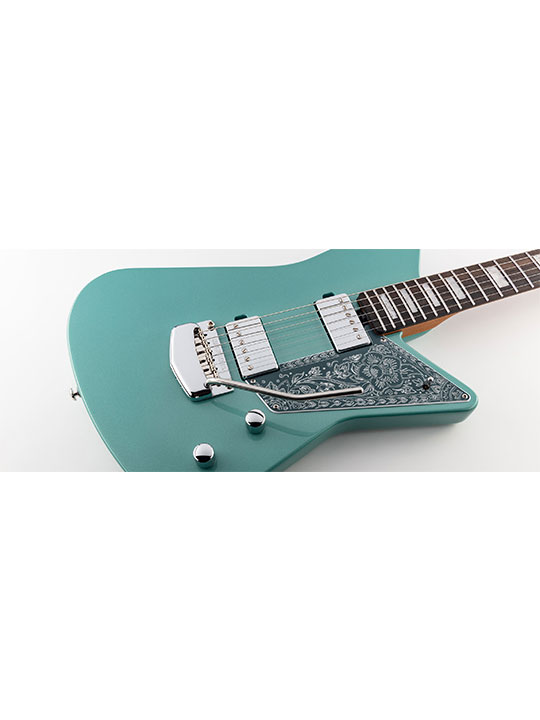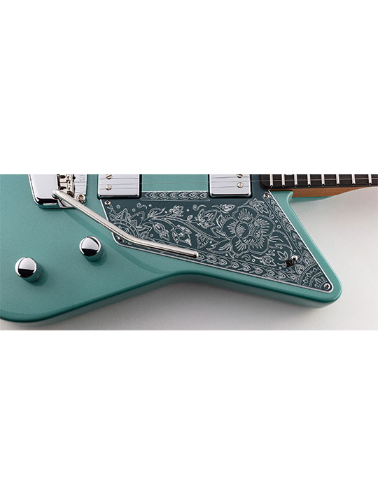 Custom pickguards are laser-etched with an original ornate floral design coordinated to complement specific finish options.