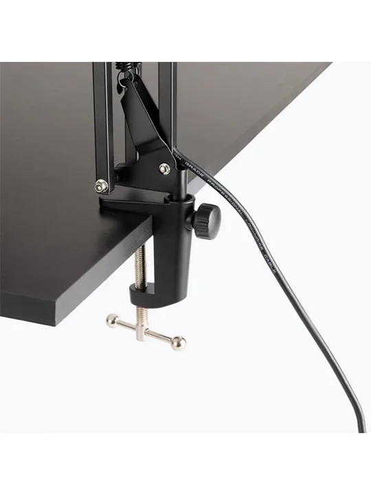 - Flexible articulating broadcast-style mic boom moves quietly to maintain production quality