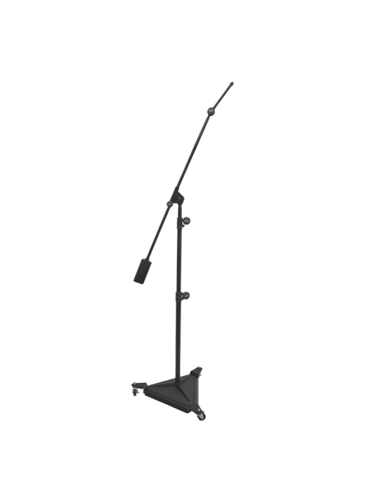 - Telescoping 43″–79″ boom features a counterweight to balance mics and prevent tipping