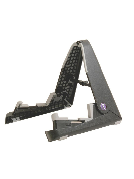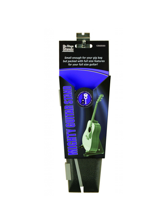 - Small enough for your gig bag but packed with full size features for your full size guitar! The GS6500 is the scaled-up version to our popular Might Uke Stand. It’s kept the compact and lightweight design, but can handle electric, hollow body electric, semi-acoustic, dreadnaught, classical, bass, and 3/4 size guitars. Folds to a compact 12.25″ x 5.85″ x 1.65″ size. Adjustable yoke depth accommodates common body sizes from 3-5/32″ to 5-1/8″.