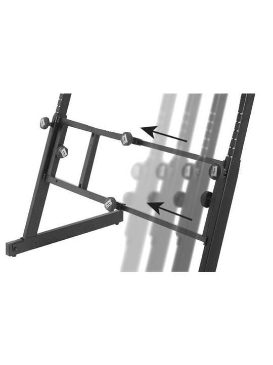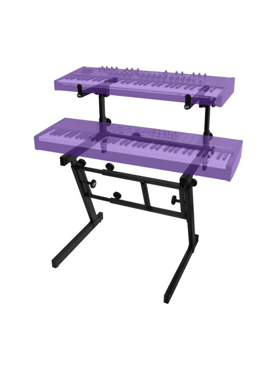 Truly professional. Truly heavy-duty. This stand allows for independent height and width adjustments and can hold 2 keyboards, yet folds into a space smaller than most keyboard cases. It was created with the help of some of the most discriminating keyboard professionals in the world, and now any musician can get onstage with this impressive stand!