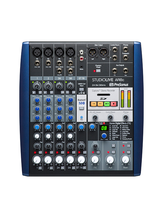 The StudioLive AR8c is tightly integrated with PreSonus® Capture® live-recording software. Capture is designed to make recording easy by instantly configuring with your mixer and allowing you to record every channel plus the main mix with a single mouse click. Even better, your Capture sessions open natively in Studio One!