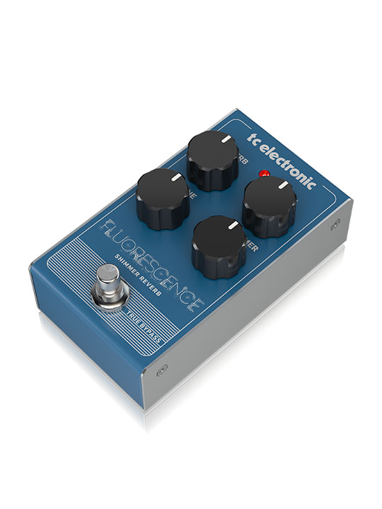 FLUORESCENCE SHIMMER REVERB is built to withstand the rigors of the road with a sturdy metal frame and high quality components. True bypass circuitry keeps the integrity of your signal free from any tonal coloration, while top-mounted jacks make it easy to fit on any pedal board.