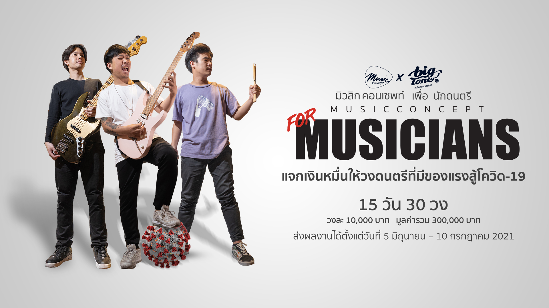 - แจกเงินหมื่นให้วงดนตรีที่มีของแรงสู้โควิด-19