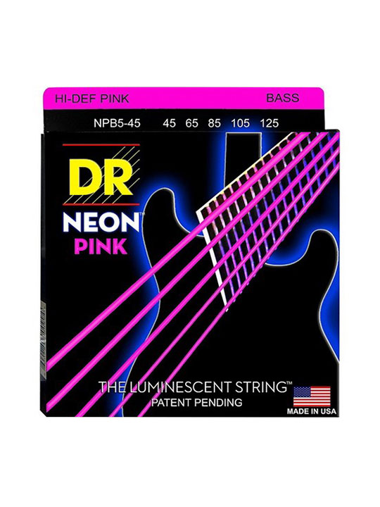DR Coated Bass Strings Neon Pink (5-Strings 45-125)
