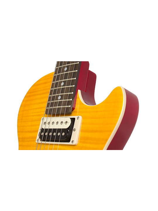 Slash himself helped design the Slash “AFD” Les Paul Special-II with an Appetite Amber finish, inspired by Slash’s own custom Les Paul. The AAA flame Maple Veneer top has single layer Ivory binding while the back, sides, and neck are finished in beautiful dark Cherry just like Slash’s original. The body and bolt-on neck are from Okoume. The fingerboard has dot acrylic inlays and the headstock features Slash’s “Snakepit” logo in gold silk print along with the iconic Epiphone script logo in silver. The truss rod cover has the familiar “bell” shape with “Les Paul Special-II” in white. The die-cast machine heads (tuners) have a 14:1 ratio for quick and easy spot-on tuning.