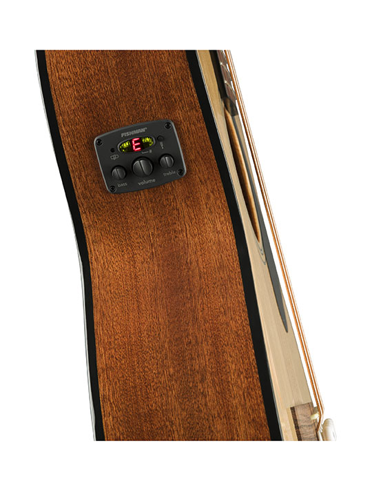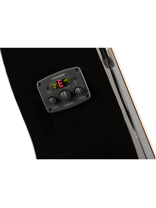A Fishman Classic Design pickup/preamp system adds peerless amplified performance with a variety of onboard controls to your acoustic instrument without compromising its pure, rich and resonant tone. The built-in tuner is conveniently placed right where you can see it.