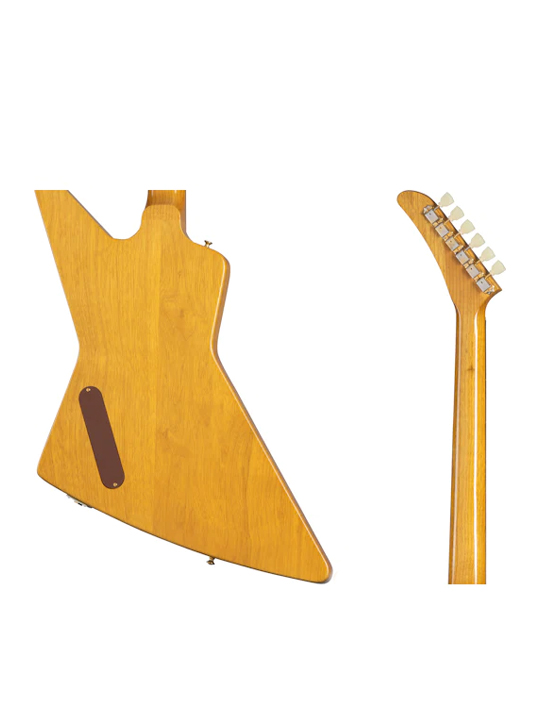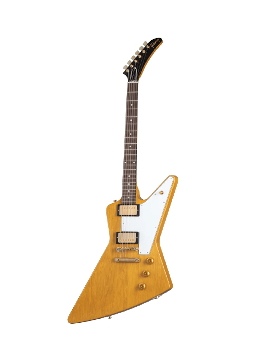 - The Gibson Explorer™ was way ahead of its time when it was introduced in 1958, and only 19 were shipped that year, but it has become very popular in the years since then. The classic vintage Explorer features have been carefully recreated in this Historic Reissue model. Featuring an ABR-1 bridge and Stop Bar tailpiece, a Korina body, Custombucker pickups, Korina neck, Indian rosewood fretboard, two volume and one tone control with CTS® pots and a phone book capacitor, gold hardware, Kluson® tuners, and a 4-ply pickguard. A historically accurate case is included, with a classic brown exterior and plush pink interior.
