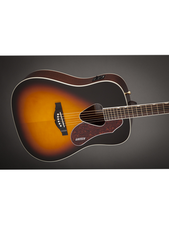 - Gretsch Rancher acoustics ได้ถูกนำกลับมาทำใหม่ให้ดีขึ้นกว่าเดิม G5024E Rancher Dreadnoughtเป็นรุ่นราคาประหยัดที่มีความโดดเด่น โดยมีคุณสมบัติระดับพรีเมี่ยม ได้แก่ solid spruce top กับscalloped “X”-bracing ที่มาพร้อมกับ Rancher bound triangular sound hole สุดคลาสสิค ไม้ด้านข้างและด้านหลัง รวมถึงคอทำจาก mahogany ปะหน้าด้วย rosewood fingerboard จำนวน 21-fret มาพร้อม “thumbnail” inlays ในแบบเฉพาะของ Gretsch อีกทั้งปิ๊กอัพ Fishman Sonicore ที่ใต้ saddleและระบบปรีแอมป์ Isys + ที่ให้ประสิทธิภาพการขยายเสียงที่ยอดเยี่ยมและเสียงที่ยืดหยุ่น พร้อมการควบคุมระดับโทนเสียง พร้อมจูนเนอร์ออนบอร์ดและไฟแสดงอายุแบตเตอรี่