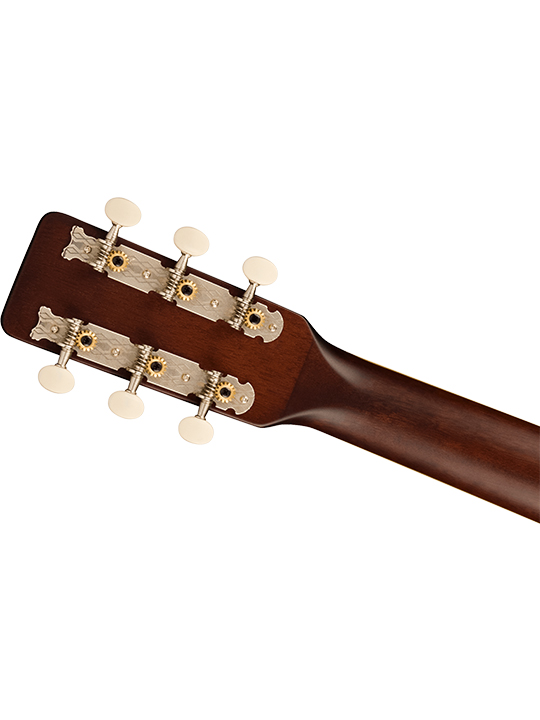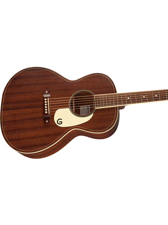 - The X-braced body is crafted with select lightweight laminate tonewoods for an optimal balance of woody vintage tone and reliable durability, while the “C”-shape neck presents an inviting feel for hours of old-timey inspiration. Period-correct details such as a vintage-style pinned bridge, “G”-graphic pickguard, painted pinstripe purfling, 3-on-a-plate open-gear tuning machines and oversized dot fingerboard inlays combine for a nostalgic personality destined for any barnburner or jamboree.