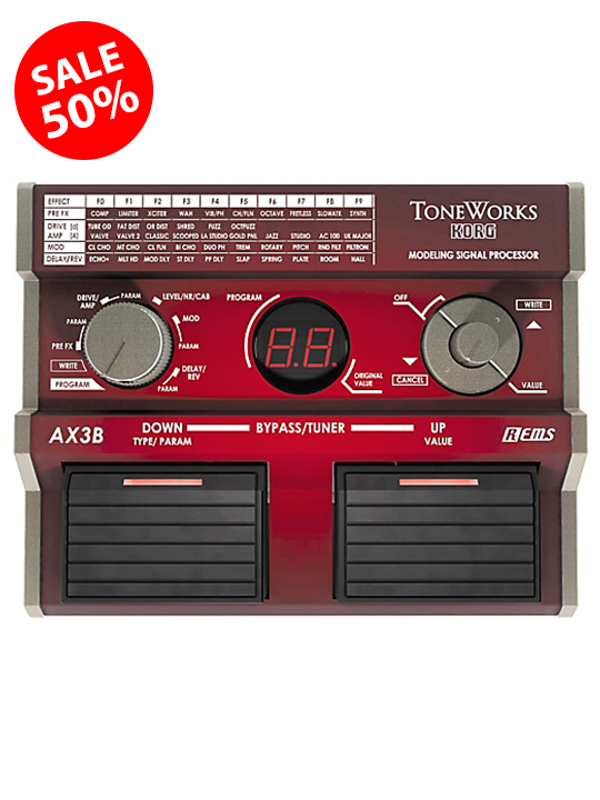 The AX3B contains 57 different realistic REMS modeling effects with the same high quality you’ll find on the top-of-the-line ToneWorks AX3000B, delivering pro-level realistic sound from a surprisingly compact package. The AX3B is designed specifically for bass, with 16 famous bass amp sounds ranging from vintage to standard models. Every detail of each original amp has been faithfully re-created, giving you an enormous variety of bass tones that include fat, warm tube sounds as well as clean sounds. The AX3B’s effects include the ever-indispensable compressor, plus an octaver to give your sound even more weight. Also included are numerous unique effects, such as a fretless effect that models the sound of a fretless bass, a slow-attack effect that simulates “violin” technique, and a great-sounding synth bass effect.
