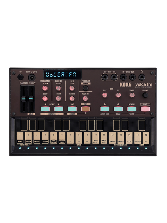 The volca fm perfectly reproduces the sound engine of the Yamaha DX7, the classic digital synthesizer that made the world aware of FM synthesis. Its six operators and 32 algorithms provide complete compatibility, and it can even load files in the SYS-EX/SYX format.