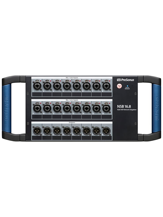 StudioLive Series III networked products form an ecosystem that is easily expanded and quickly configured. Designed to enhance each other, these products are at the forefront of AVB networking technology. The NSB 16.8 can be used alone or with many other NSB-series stage boxes to add remote audio to one StudioLive Series III digital mixer or multiple mixers on the same network.