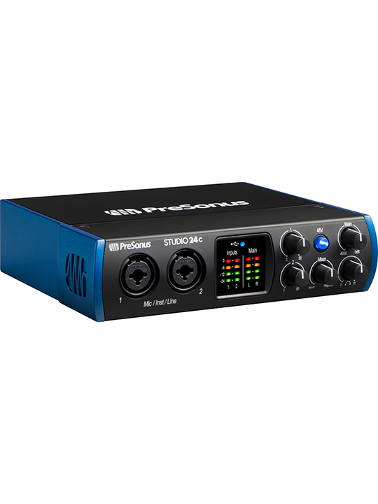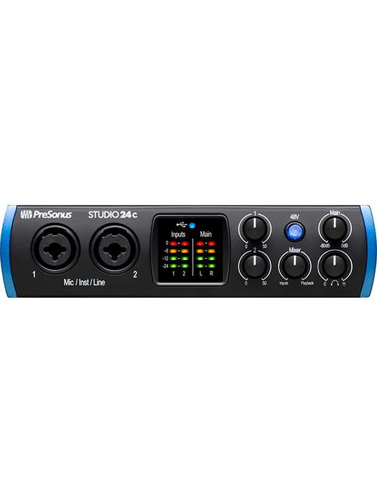 The Studio 24c works with virtually all macOS, Windows, iOS and iPadOS audio-recording software and comes with a license for PreSonus®’ Studio One® Artist for a complete recording solution. Studio One is easy to learn and enables you to compose, record, and produce without getting distracted by the tools.