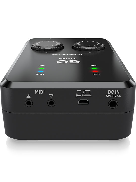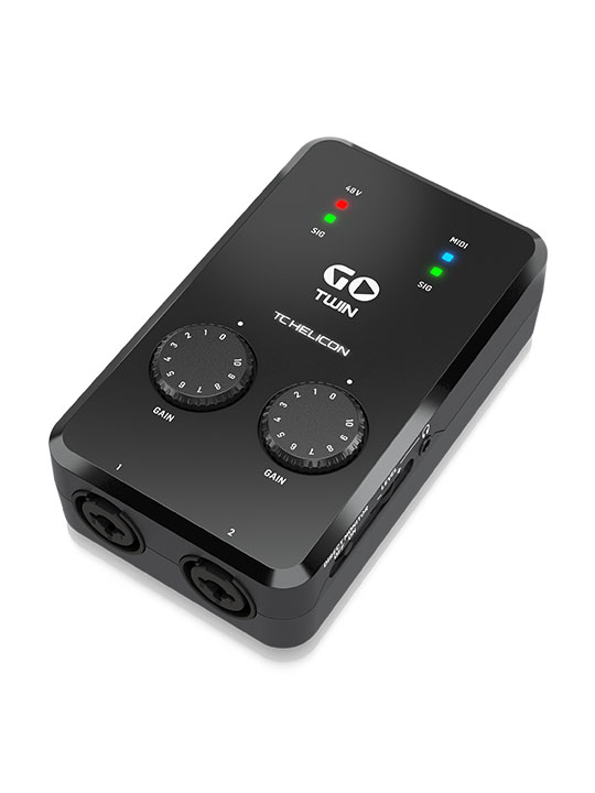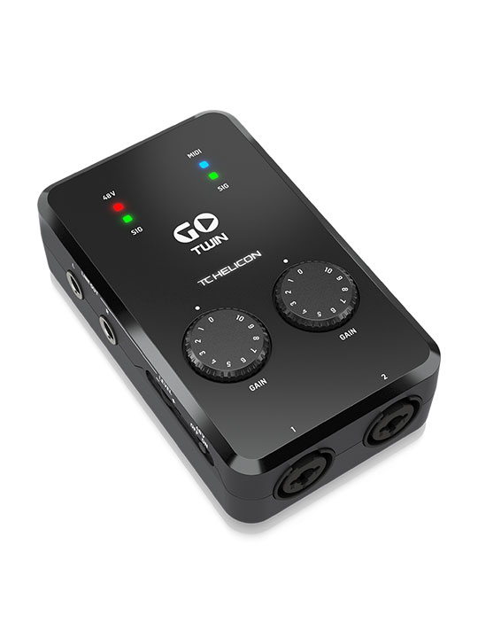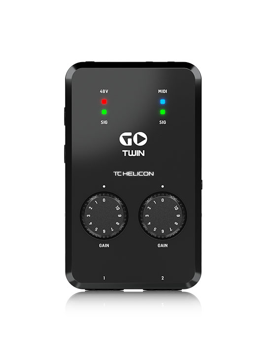 GO TWIN contains two ultra-clean pre-amps from award-winning, high-end mixing console manufacturer Midas. 48 V Phantom Power makes sure you’ll always have enough juice for your condenser mic wherever you record.