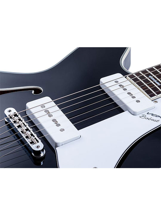 The pickups in the Bobcat are modeled after the original Italian-made pickups, but with some improvements in the voicing. The Bobcat V90 is equipped with soapbar pickups. These use Strat-type pole magnets, and are notable for their bright and punchy sound that is absent on previous semi-hollow guitars.